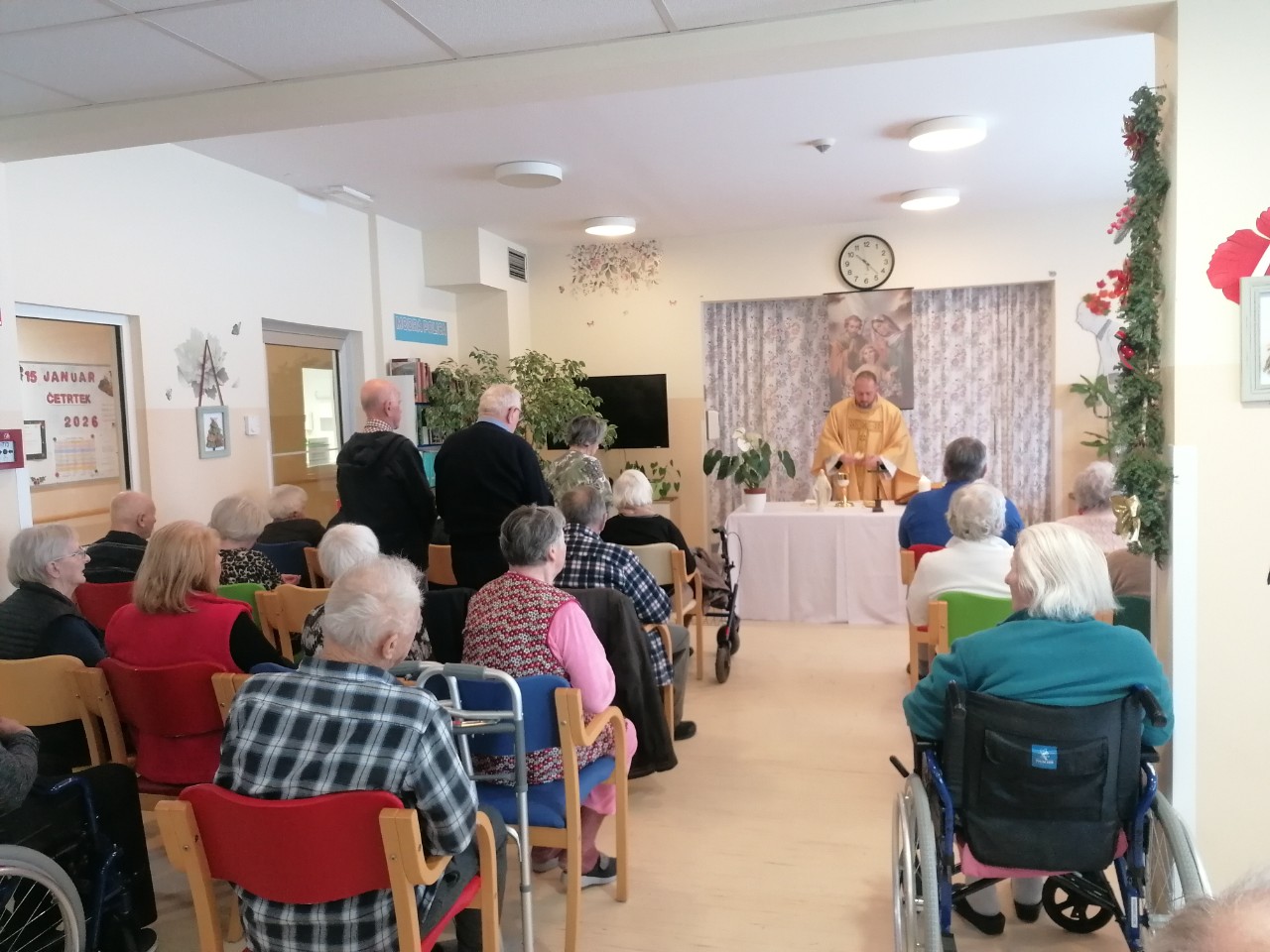 Danes smo imeli na DE Božično mašo za stanovalce dislocirane enote in mestnega trga. Božič smo zaradi bolezni praznovali malo kasneje, a zato še z večjim zanosom in veseljem.