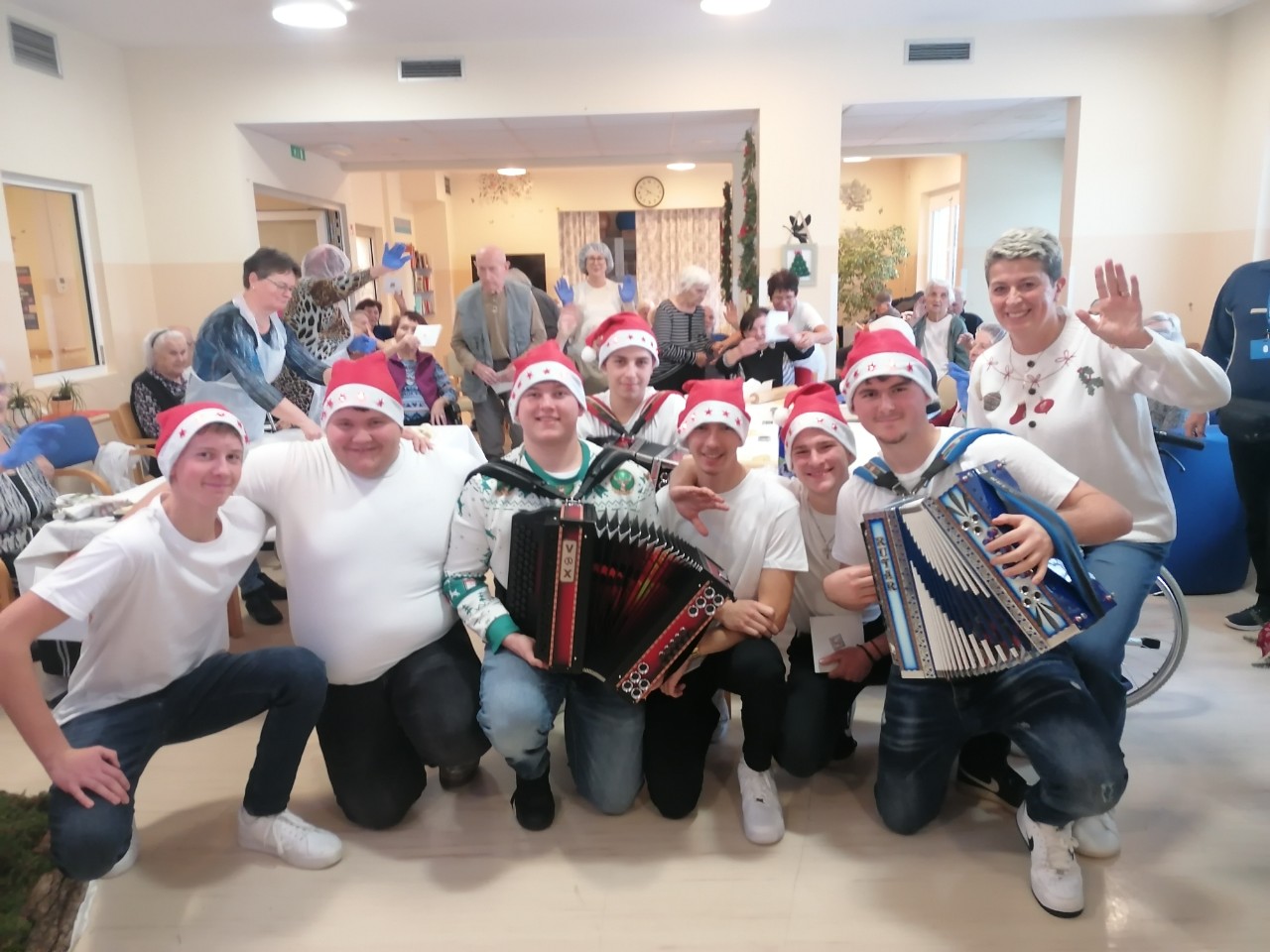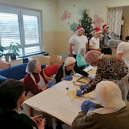 Dijaki srednje strojne šole in njihovi profesorji so za naše stanovalce izdelali voščilnice in jim razdelili.