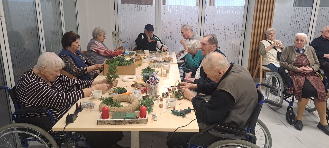 V Domu starejših na Mestnem trgu smo skupaj s stanovalci v prijetnem, ustvarjalnem vzdušju izdelovali adventne venčke. 🌿✨