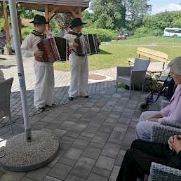 Folkloristi OŠ Metlika pod vodstvom učitelja Tomaža Žuglja so našim stanovalcem z belokranjskim plesom, petjem in igranjem na harmoniko polepšali dan. Iskrena hvala učencem in učitelju.