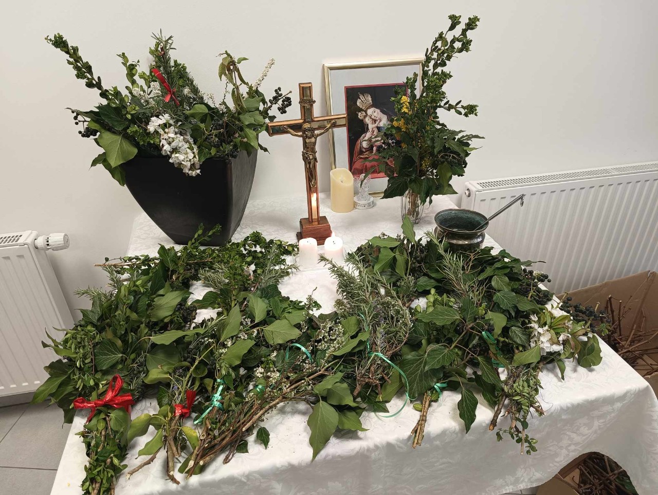 Danes smo na Mestnem trgu izdelovali butarice, kaplan Jernej pa jih je po končani delavnici tudi blagoslovil. ![]()