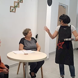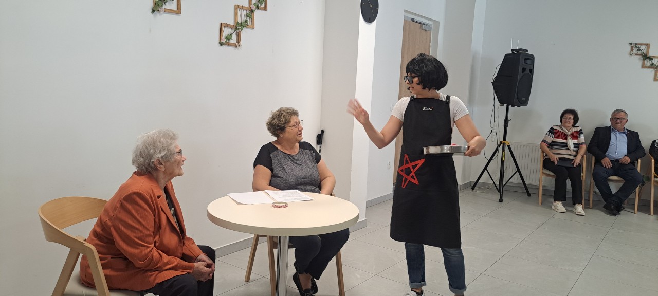 Za smeh do solz pa sta poskrbeli Alenka in Mojca Mežnaršič z zabavnim skečem "Kavica pri Bertusu" ☕