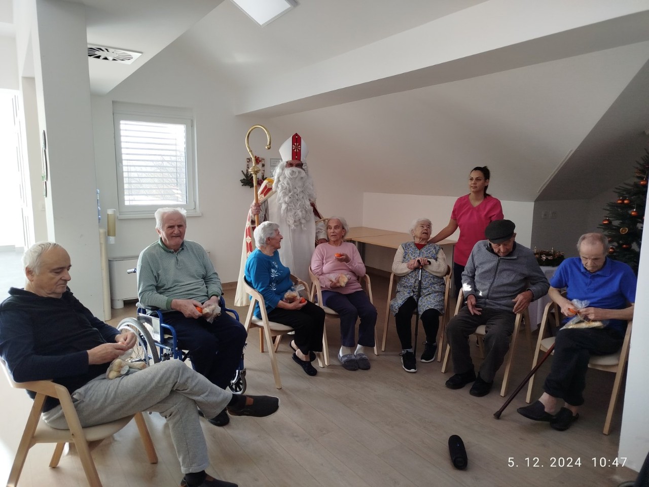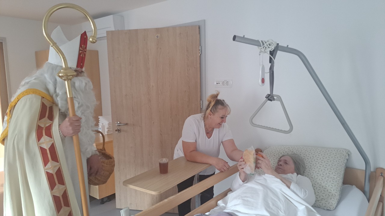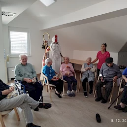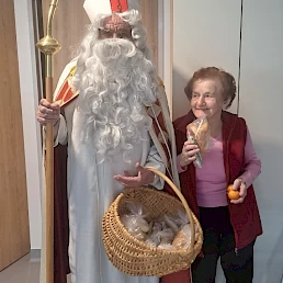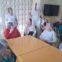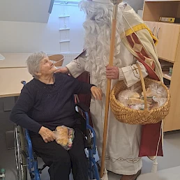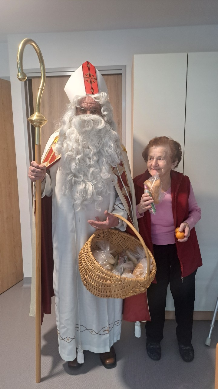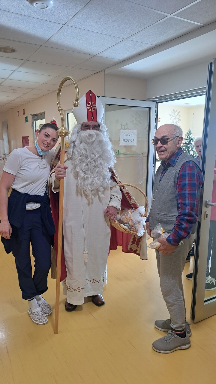 Oblekli smo enega izmed naših stanovalcev v Miklavža, ki je hodil po domu in obdaroval naše stanovalce. S tem smo skupaj obudili praznično vzdušje in veselje. Za darila pa smo poskrbeli mi, saj je naš dom omogočil, da smo vsakemu stanovalcu pripravili nekaj posebnega. Praznični trenutki so še toliko lepši, ko jih delimo z našimi dragimi stanovalci. Zahvala za trud in čas gre gospodu Jerneju Bratkoviču, našemu Miklavžu.