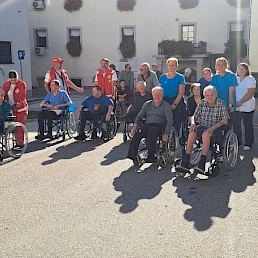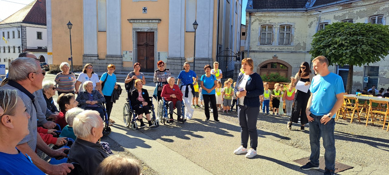 Naše stanovalce in vse udeležence so ob začetku pohoda na Mestnem trgu toplo pozdravili organizator g. Sandi Adlešič ter županja Metlike, ga. Martina Legan Janžekovič.