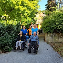Pohod nas je vodil z Mestnega trga vse do dislocirane enote doma, med potjo pa smo srečevali številne mimoidoče, ki so z nasmehom sprejeli našo gesto podpore – hkrati pa razveselili naše stanovalce.