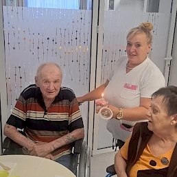 Eden izmed naših stanovalcev je prav danes praznoval svoj rojstni dan, zato smo mu pripravili prijetno presenečenje – mini tortico 🎁 in prisrčno čestitko 💌. Njegov nasmeh je bil neprecenljiv! 😊