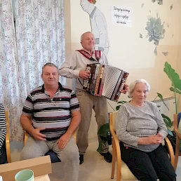 Praznovanje rojstnih dni stanovalcev rojenih v mesecu septembru. Prostovoljci Diko, Jože, Zala in Majda so poskrbeli za glabo, petje in ples. Kuhinja je pripravila odlično torto za vse stanovalce. Vsi skupaj smo se imeli zelo lepo.