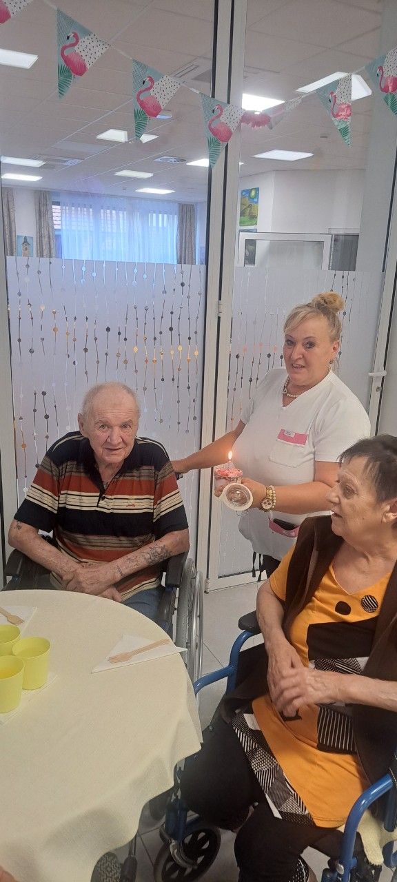 Danes smo v domu starejših skupaj s stanovalci praznovali rojstne dneve vseh, ki so rojeni v mesecu avgustu. 🎈 Ob prijetni glasbi, smehu in slastni tortici 🍰 smo si pričarali prav posebno praznično vzdušje.