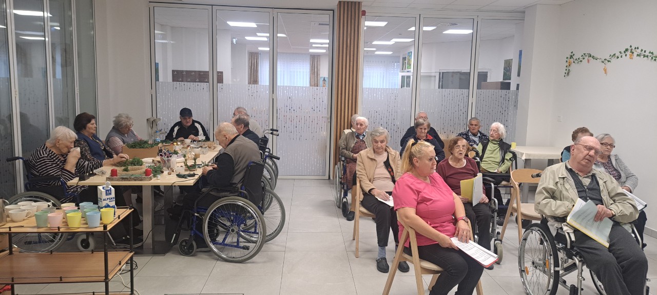 V Domu starejših na Mestnem trgu smo skupaj s stanovalci v prijetnem, ustvarjalnem vzdušju izdelovali adventne venčke. 🌿✨