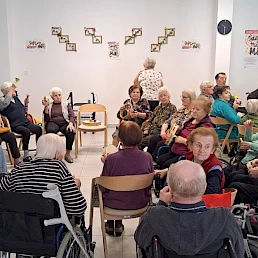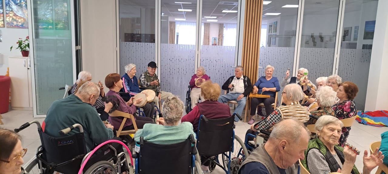Na koncu smo se še sprostili ob glasbi 🎶 ter zaigrali na različne inštrumente 🥁🎹🎵. Skupina stanovalcev je resnično uživala – bilo je veliko smeha, veselja in prijetnega druženja 😄❤️