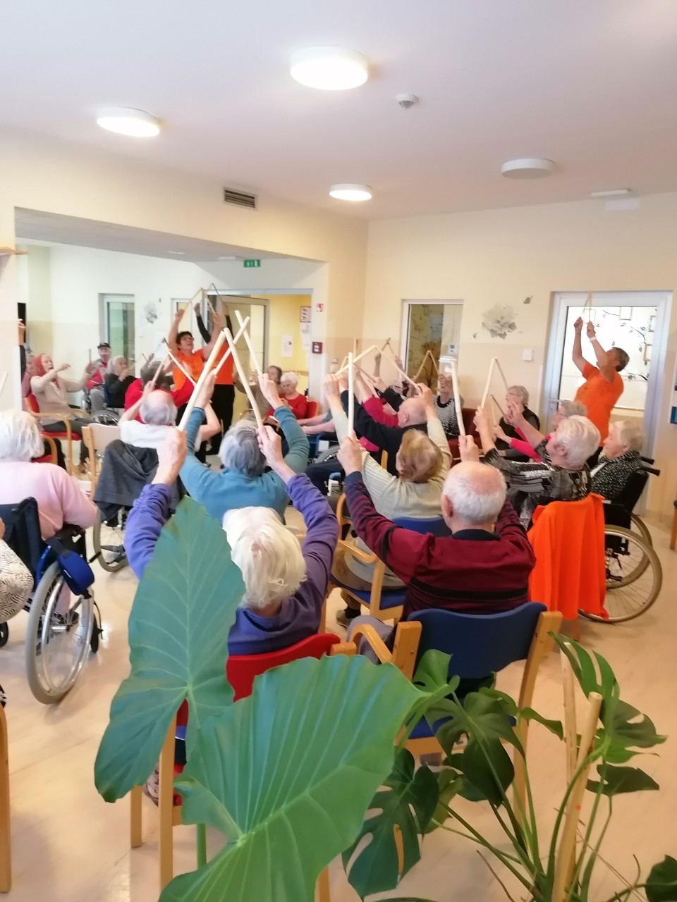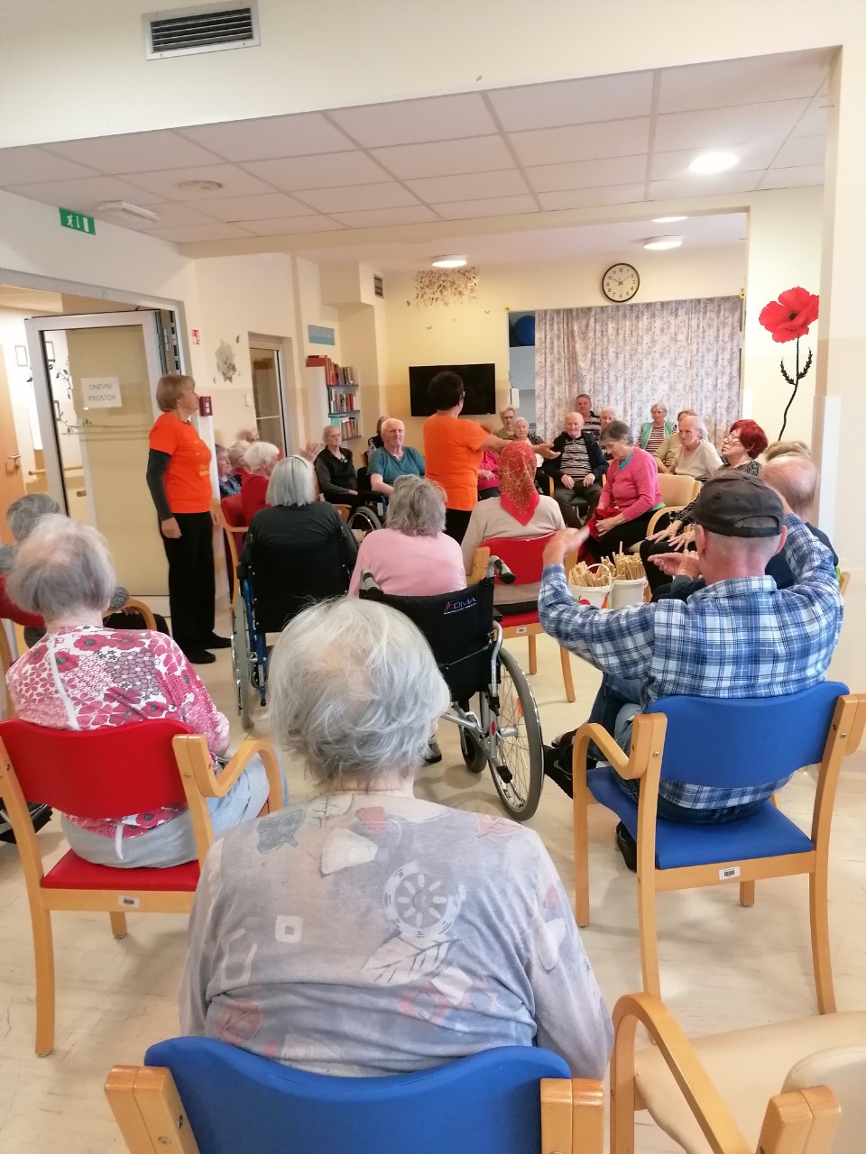 Deževen dan so nam na DE polepšale gospe iz ŠOLE ZDRAVJA SUHOR. Skupaj s stanovalci smo telovadili, peli in se veselili.