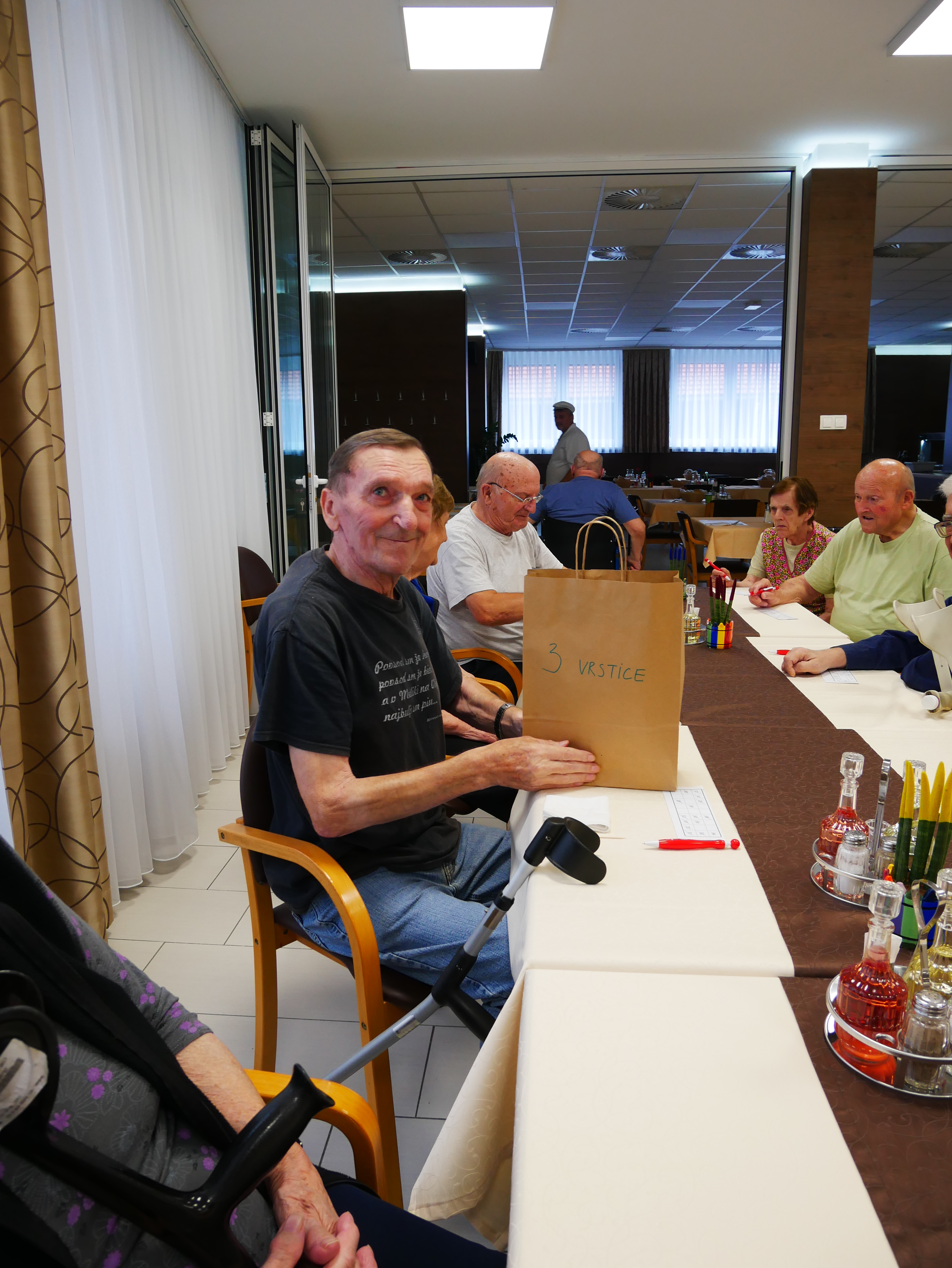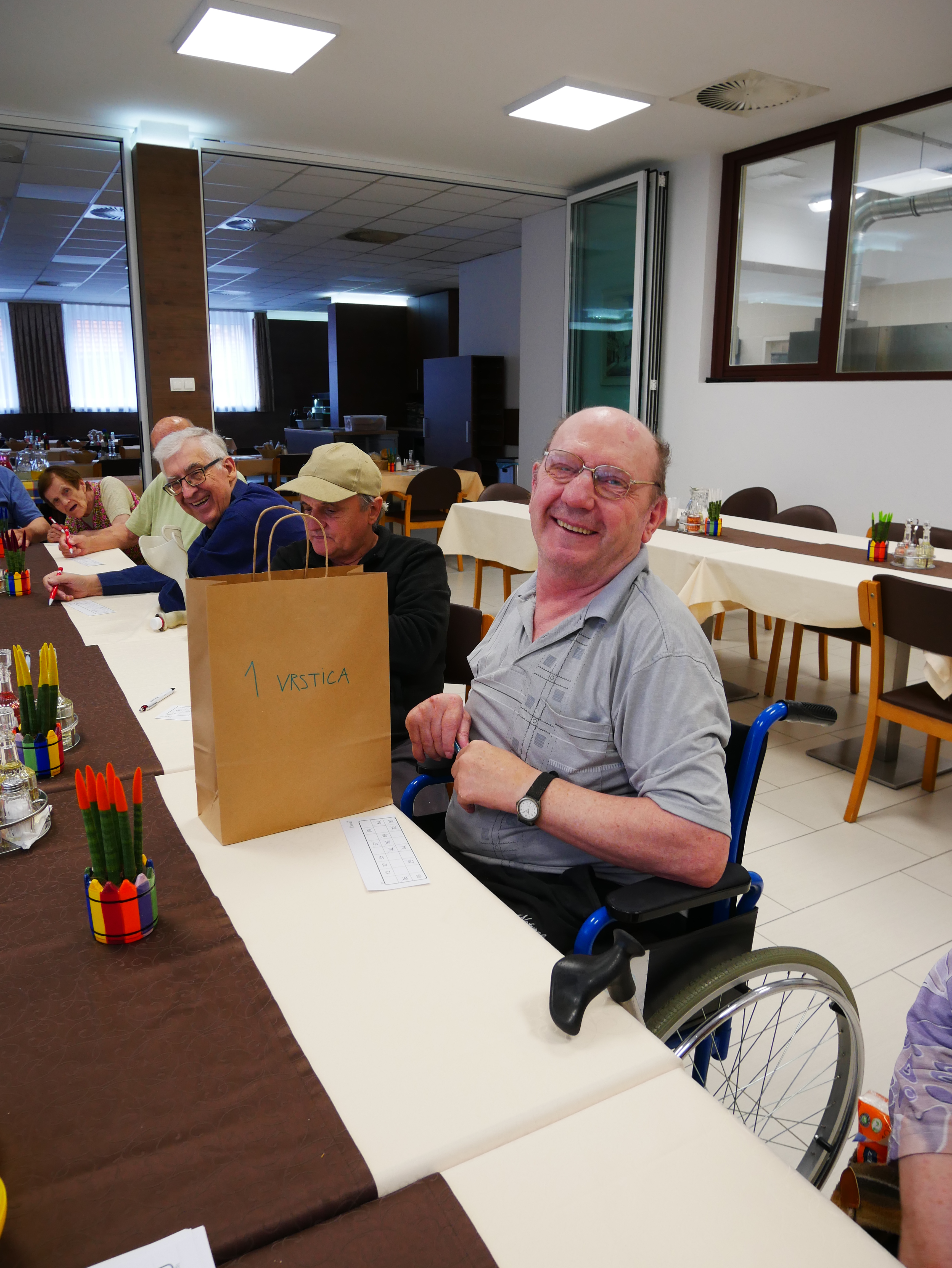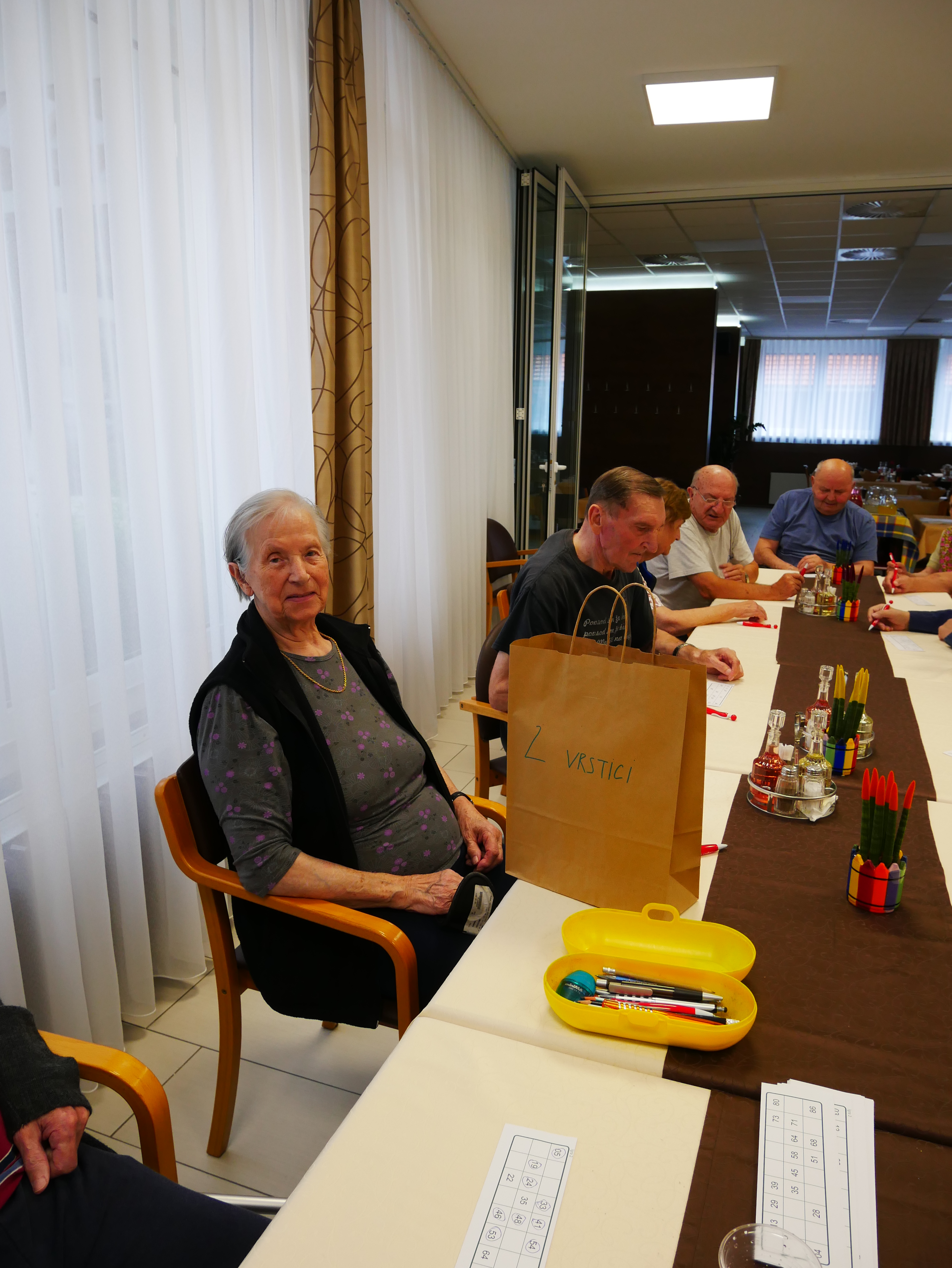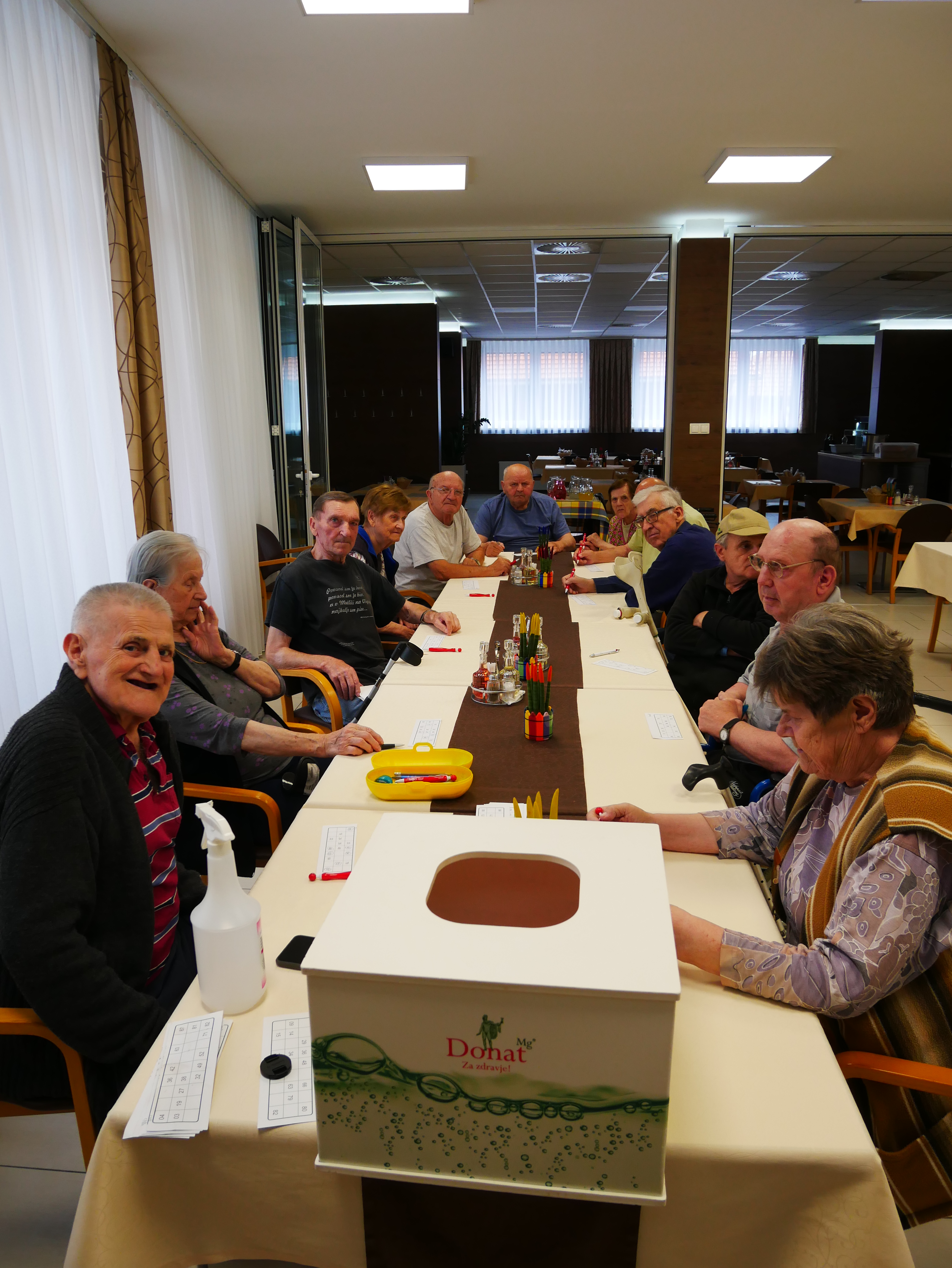 V jedilnici doma so stanovalci ponovno preverili koliko sreče imajo pri tomboli. Dolgo časa so se žrebale številke, a vendar so se kmalu podelile nagrade za izpolnjeno eno vrstico, dve vrstici in seveda na koncu za izpolnjene vse tri